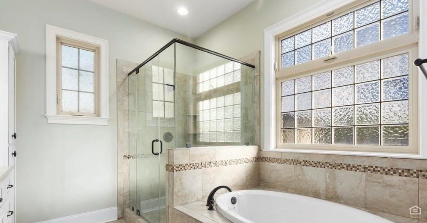 Once upstairs, you’re welcomed by a large bonus area. Again, the theme of large windows and lots of natural light continues throughout the home. Two additional rooms and a shared full bath can also be found on the second floor.