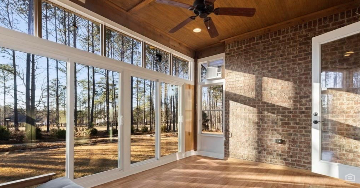 A stone fireplace in the living room adds an additional special touch along with glass doors leading out to the enclosed back porch.