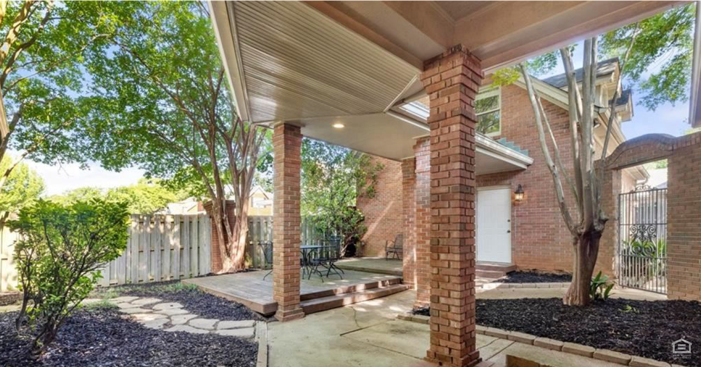 Located in a cul-de-sac, mature trees line the driveway up to the three-car garage. From there, you will see a lovely patio and covered walkway connecting the primary residence and the garage.