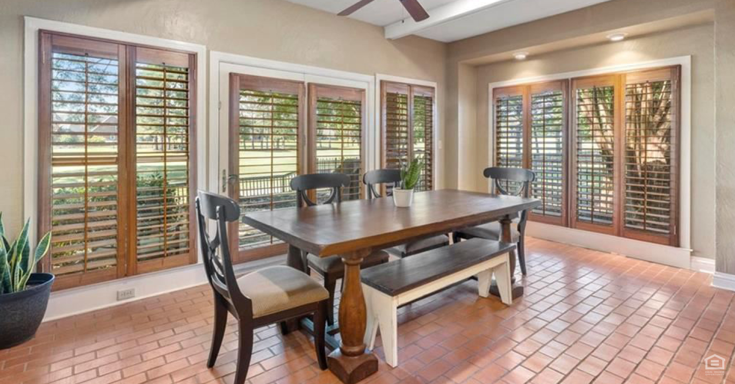 There is also plenty of natural light streaming through windows with plantation shutters. In fact, plantation shutters can be found throughout the 2,808-square foot home.